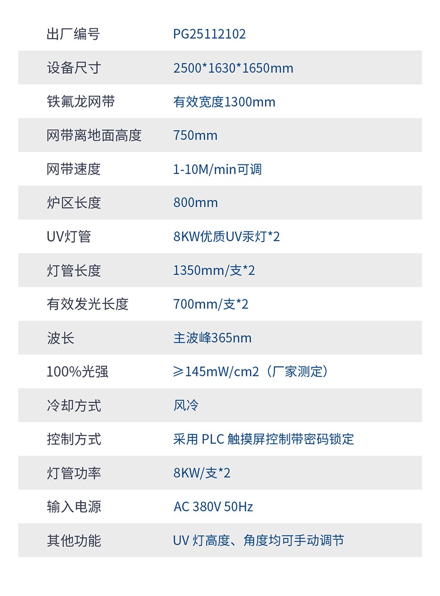• 藍盾UV1300MM*8KW兩組燈UV固化機